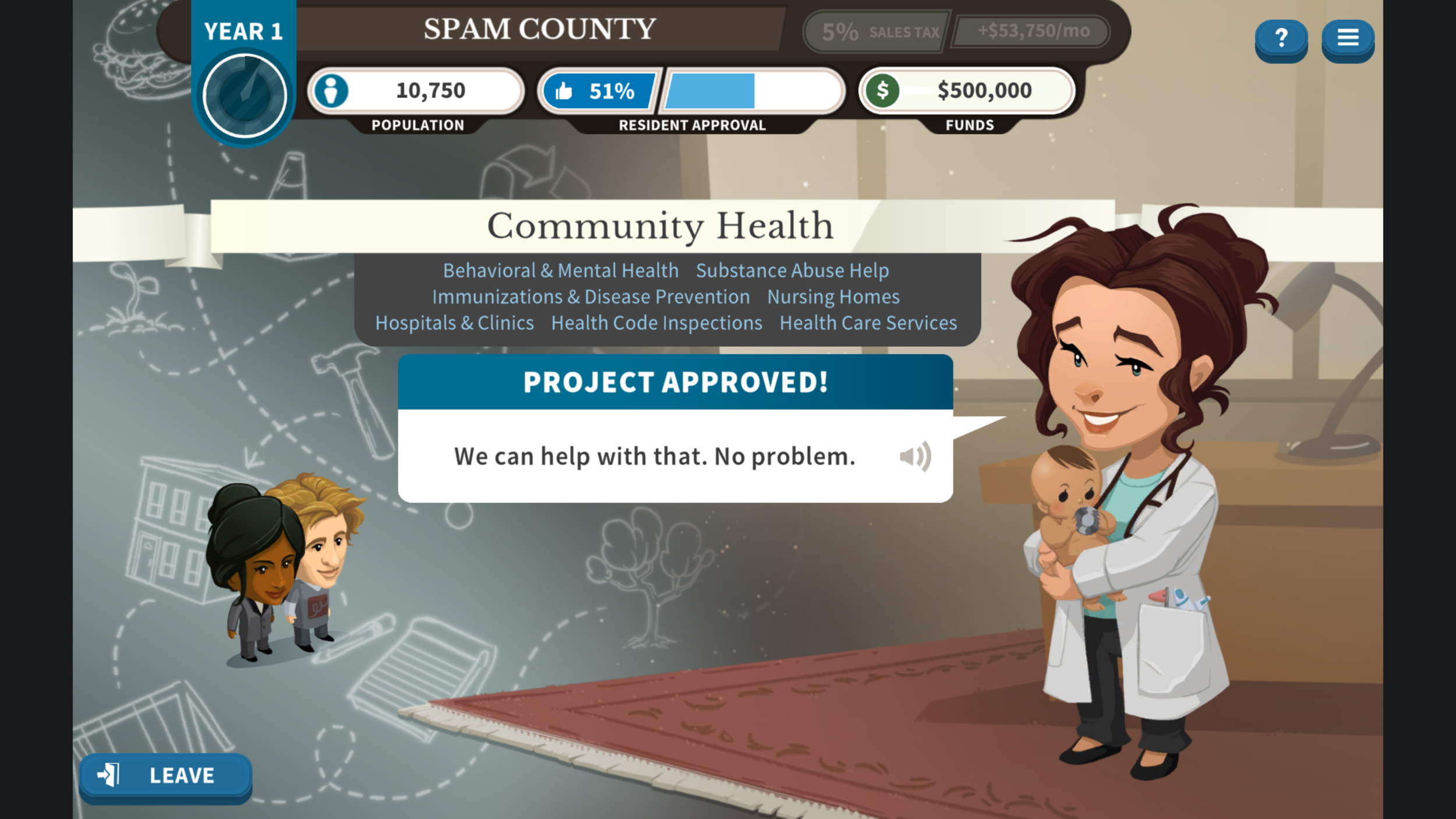 Can you run your county? You'll have to help fellow-citizens while managing taxes and local emergencies. Plus, keep an eye on reelection!