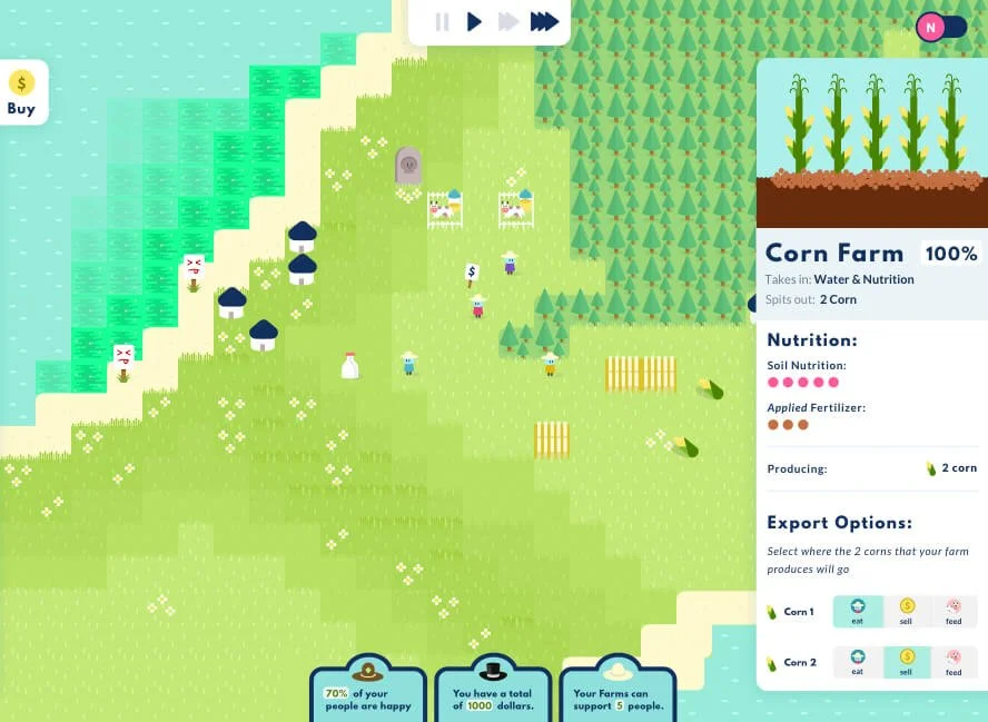 This town-building game teaches complex systems. Made in partnership with the Scalable Systems Lab at UW-Madison. Played by thousands of kids a month.