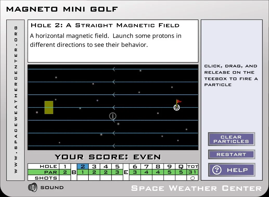 Play mini golf on planetary greens with sub-atomic golf balls! Guide proton golf balls through the magnetic and electric fields to sink the putt.